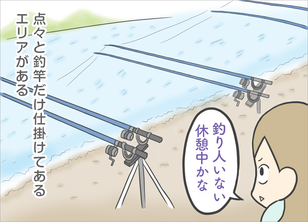 その方は、車で待機して、釣れたら現場まで釣りに来るという感じでした。