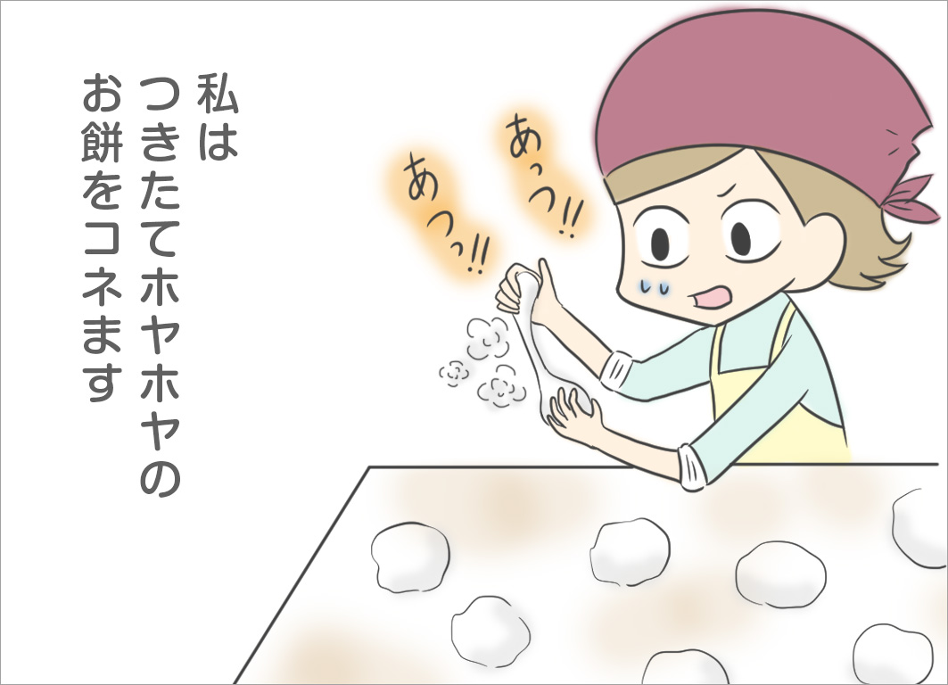 臼と杵を使った餅つきではなく、