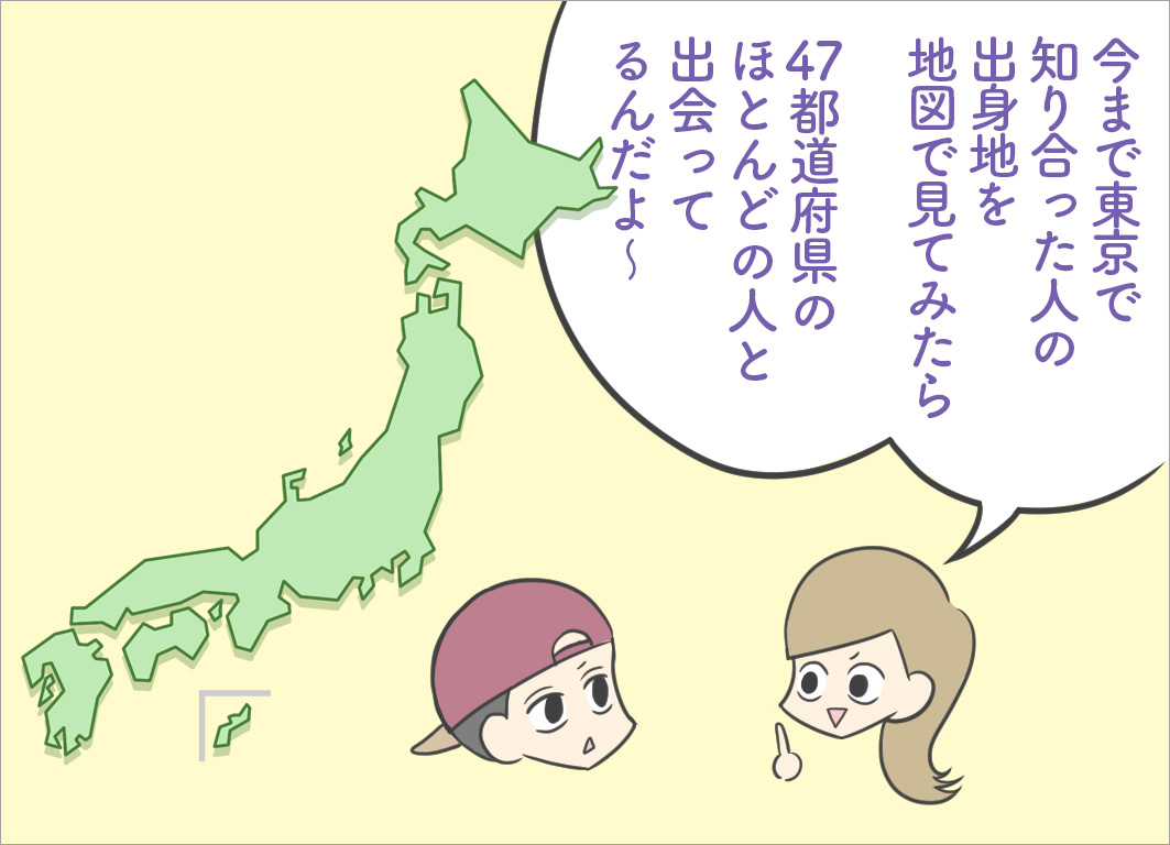 地図を見ながら今まで出会った人の出身地を確認してみると、ほぼ全国制覇する勢いでした。